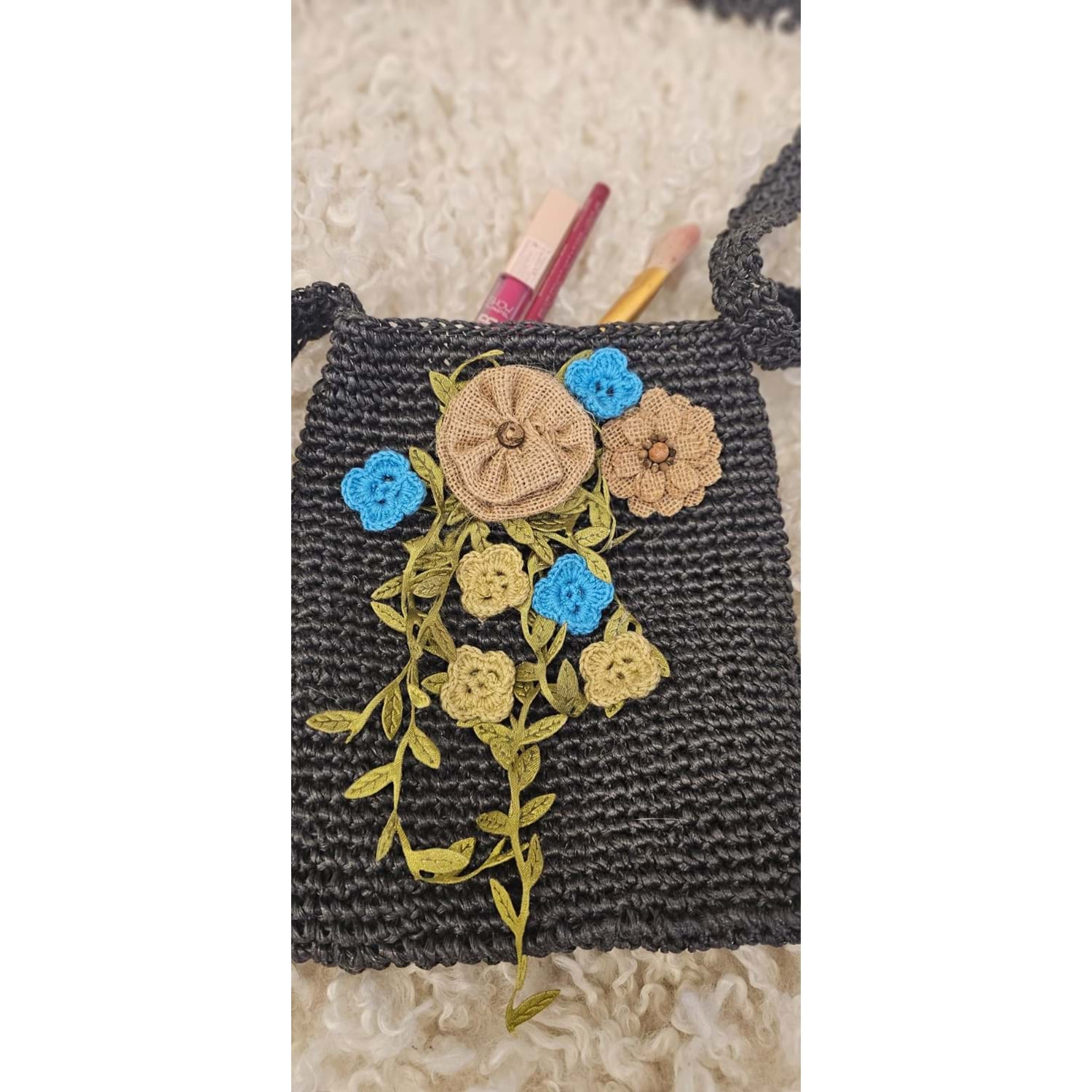 20x23 cm ebatlarında çapraz kullanabileceğiniz ip uzunluğu boydan boya 140 cm'dir.