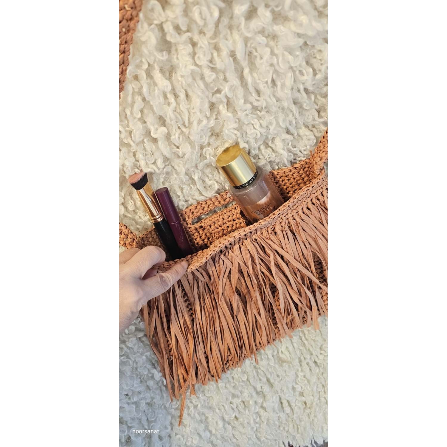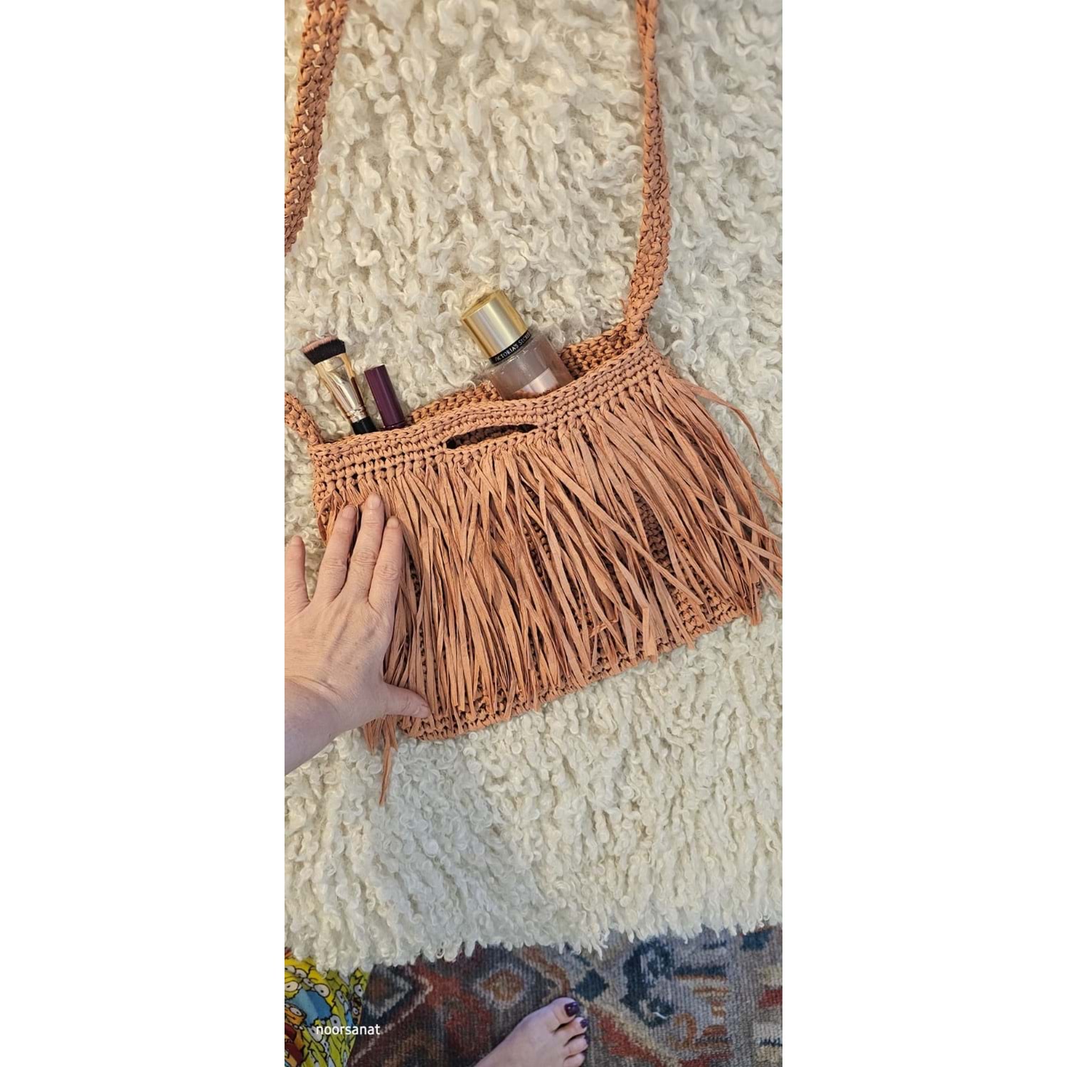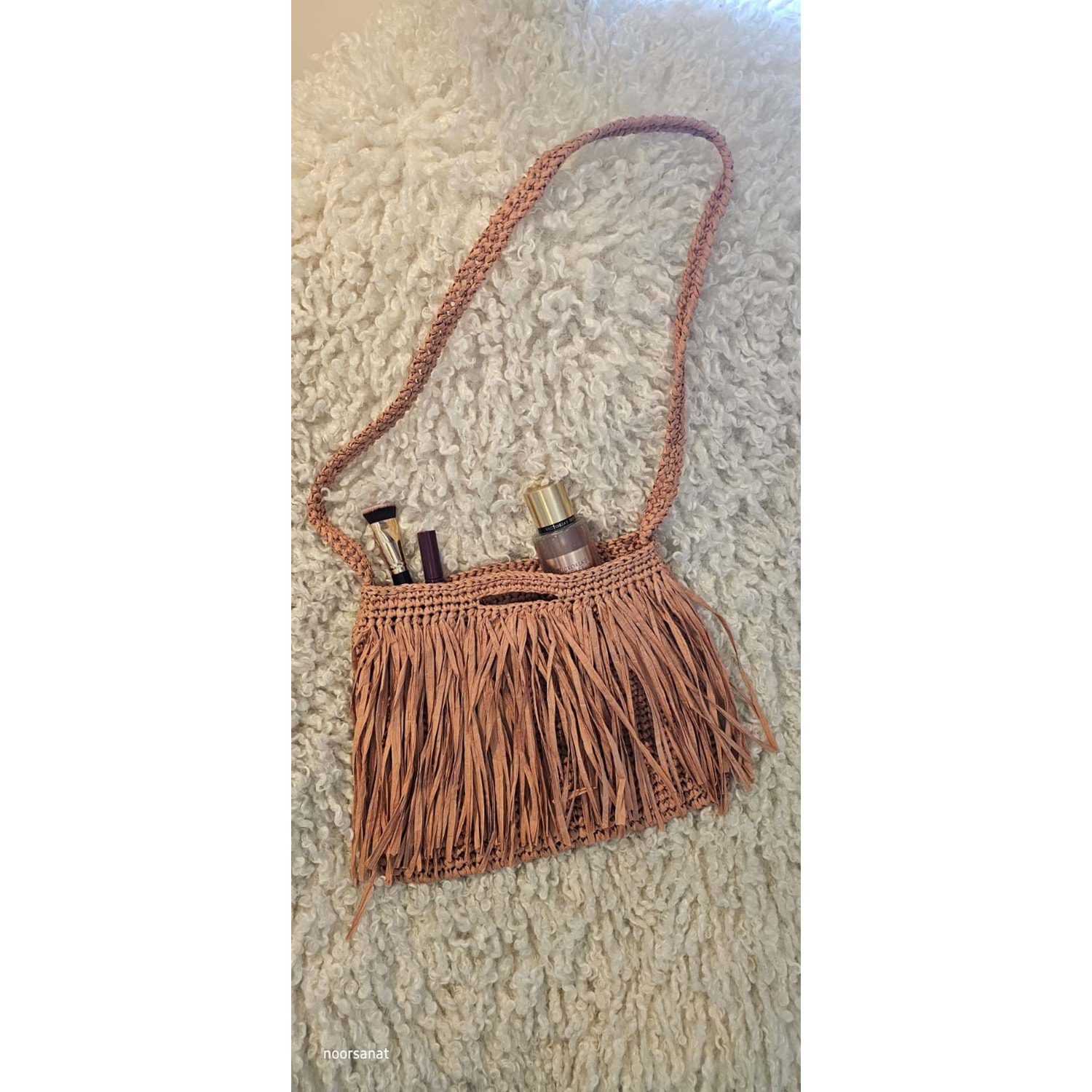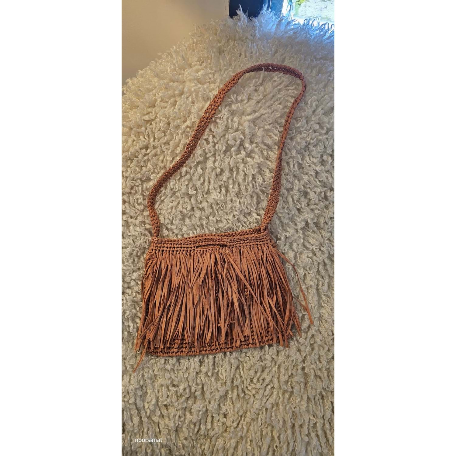 sap uzunluğu 90 cm olan el işçiliği kağıt ipten örülmüştür